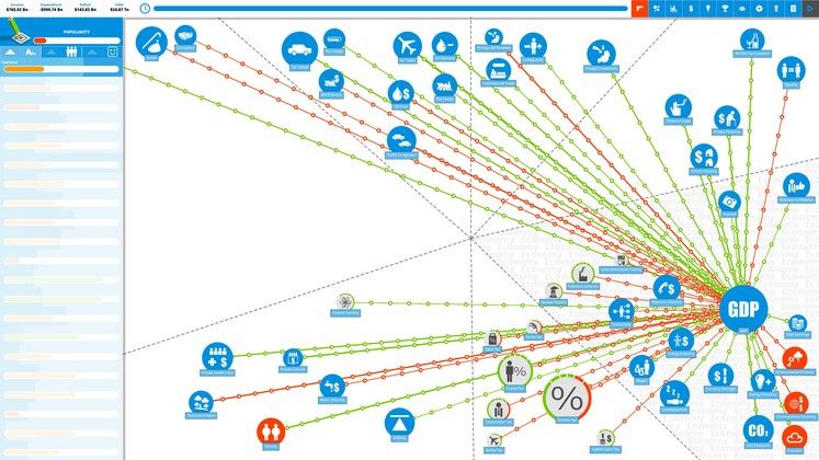 다행히도 Democracy 4의 매우 시각적 인 UI 덕분에 모든 복잡성을 쉽게 관리 할 수 있습니다. 좋은 것은 녹색으로, 나쁜 것은 나쁜 것으로, 문제가 무엇인지, 어떤 이점이 있는지 한눈에 알 수 있습니다. 아이콘, 인구 통계 또는 목사 위로 마우스를 가져 가면 모든 관련 요소를 서로 연결하는 일련의 색으로 구분 된 움직이는 선이 표시됩니다. 화살표의 속도는 연결 강도와 상황이 각각에 얼마나 영향을 미치는지 나타냅니다. 다른.
