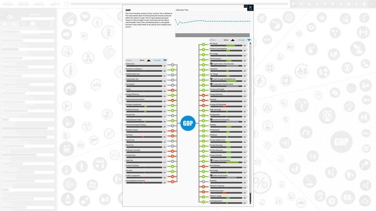 게임의 핵심은 정치적 힘을 사용하여 정책에 영향을 미치고 사회 전체에 영향을 미치면서 교대로 진행됩니다. 민주주의 게임은 본질적으로 매우 복잡합니다. 교통, 세금 및 아동 지원과 같은 수백 가지 주제가 사회의 거의 모든 측면을 포괄하고 경제적 (부자, 가난한 등), 인종에 관계없이 개별 유권자 그룹 및 인구 통계를 추적합니다. (소수자, 이민자 등), 정치적 (자본주의 자, 자유 주의자 등) 또는 심지어 연령대 (은퇴자, 밀레니엄 세대 등).