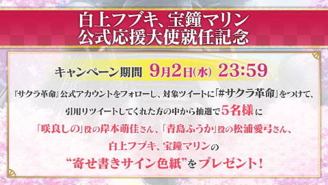 흰색에 후부키, 宝鐘 마린 공식 응원 대사 주년 기념 캠페인이 실시된다
